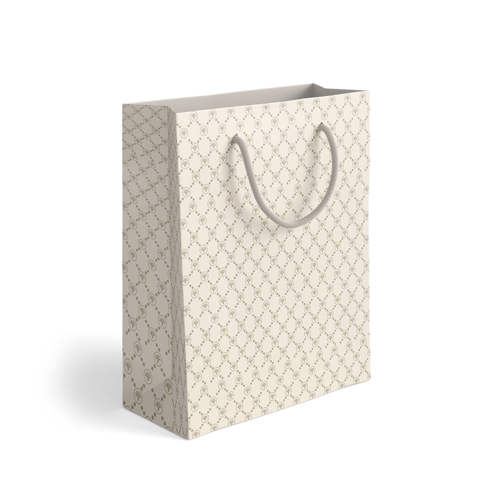 A4 Gift Bag with Rope Handles. Matt Exclusive FNB Classique Beige Print on 200gsm Art Paper. 340mm(h) x 220mm(w) x 123mm(g)