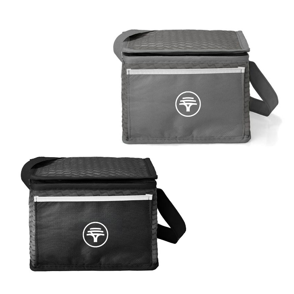 The Ridge 6 Can Cooler is made from durable 80g/m² non-woven fabric and features an insulated aluminium foil lining to keep drinks cool. It holds up to six cans, with a zippered main compartment, front pouch, and a convenient carry strap—perfect for daily use or outdoor events.