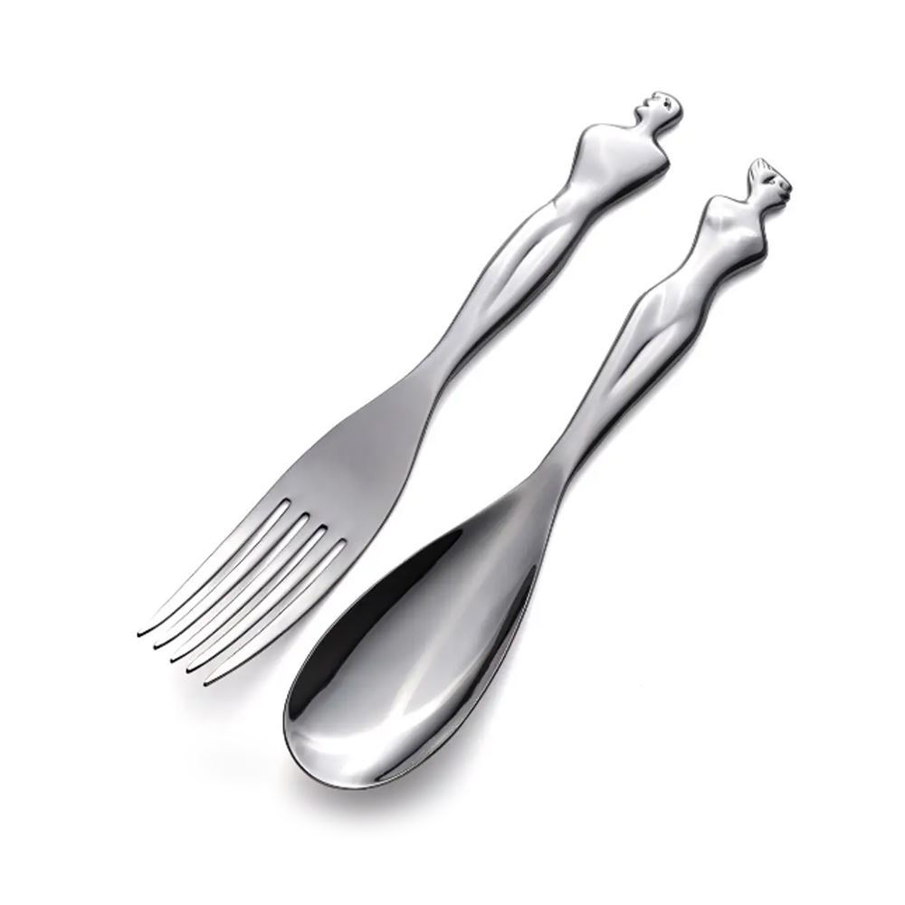 Perfect for serving generous, fresh salads, this contemporary couple adds a touch of artistry and elegance to your dining experience. Whether you're hosting a dinner party or enjoying a family meal, the Soul Mates Salad Servers will be a conversation starter for many occasions.