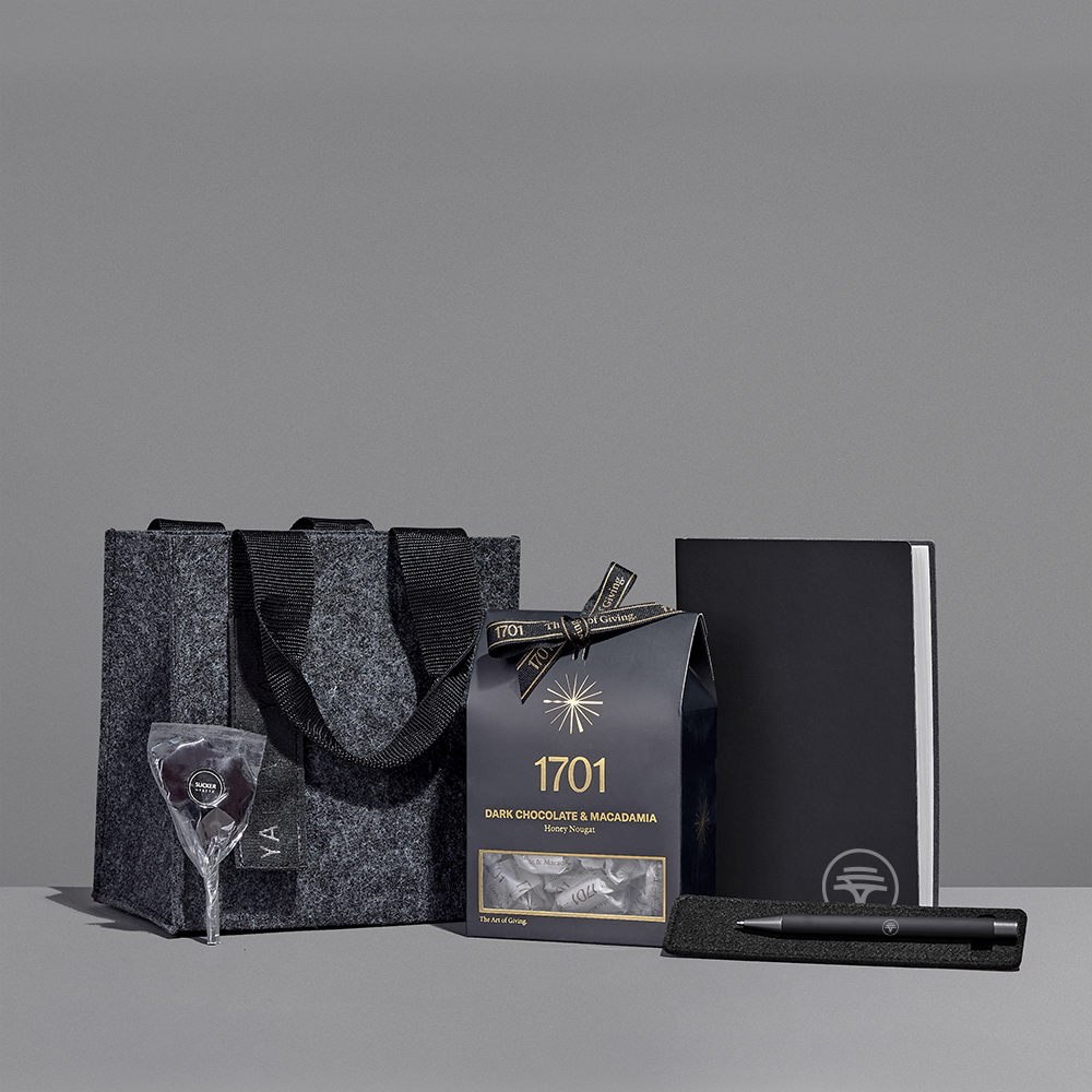 The Yatta range of hampers is expertly crafted to provide a delightful experience with a curated selection of premium items and edible treats. Elegantly presented in a Yatta drawstring bag, this hamper is further encased in a durable Dark Grey RPET felt gift bag.